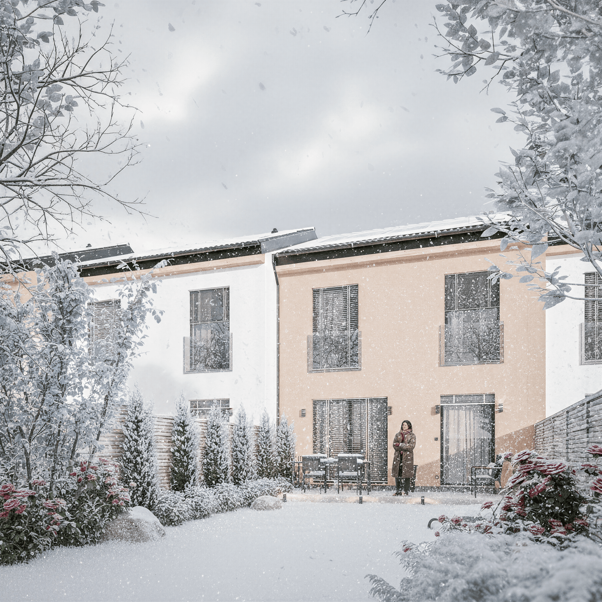 Naším cílem nebylo jen postavit domy, ale vytvořit prostor pro skutečný život. Celý koncept sází na čisté linie a maximální prosvětlení interiéru, což v kombinaci s praktickým dispozičním řešením vytváří vzdušné a inspirativní prostředí pro celou rodinu. Každý dům je citlivě zasazen do mírného svahu, což budoucím majitelům zaručuje nejen dostatek soukromí na vlastních zahradách, ale především unikátní, ničím nerušený výhled do otevřené krajiny.