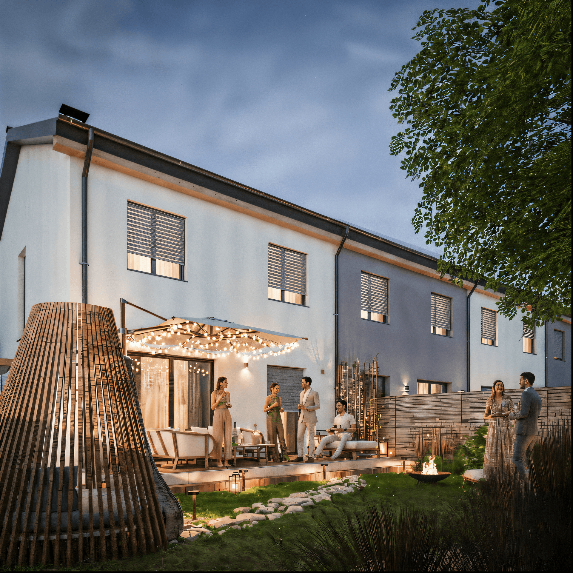 - Prosvětlené interiéry: Velkoformátová okna a orientace domů zajišťují dostatek slunce po celý den.